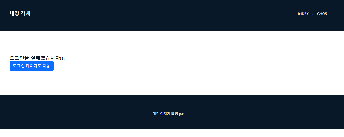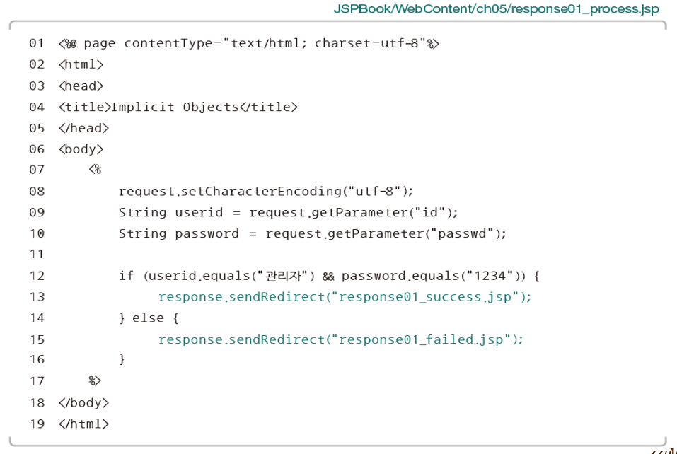 }else { // 일치하지 않으면 response01_failed.jsp 페이지로 이동
