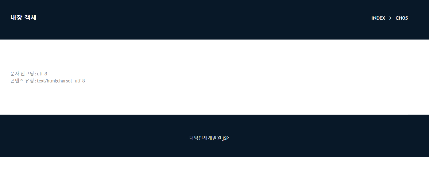 <p>문자 인코딩 : <%= response.getCharacterEncoding() %></p>