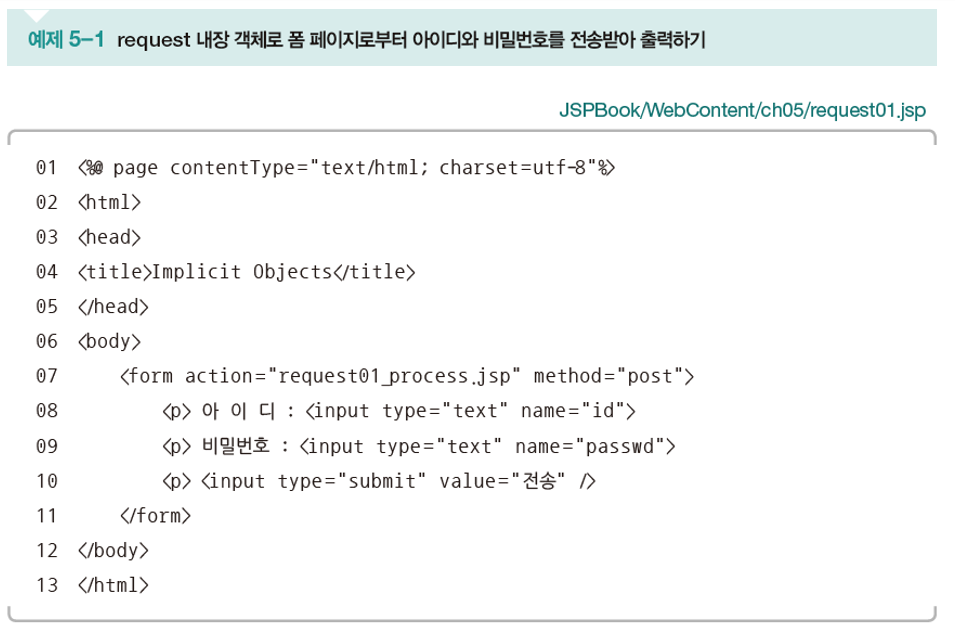 // 폼 페이지에서 입력한 한글을 처리하도록 request 내장 객체의 setCharacterEncoding() 메소드에
