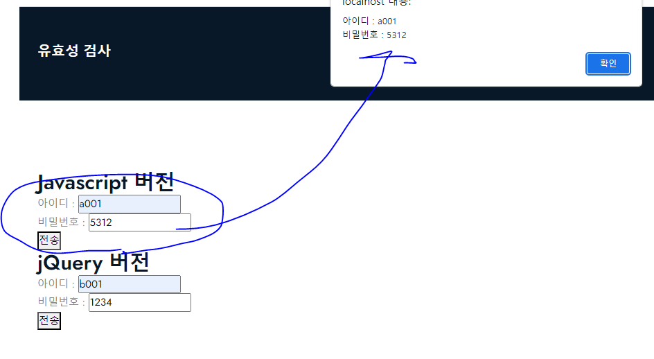 "비밀번호 : " + document.loginForm.pw.value);