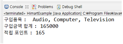 cart += ", "+c; // c.toString() 메서드 자동 실행