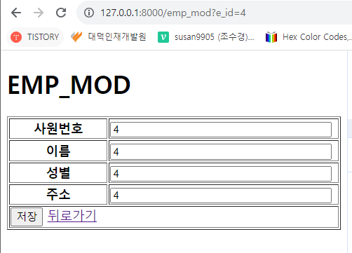 - http://127.0.0.1:8000/emp_mod?e_id=4