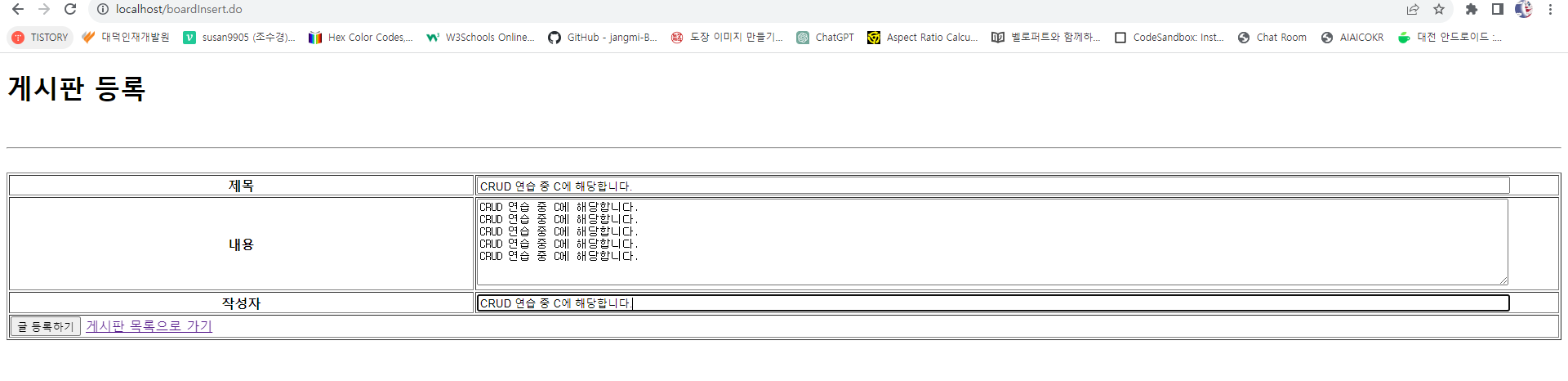 <title>게시판 CRUD 연습 > 게시판 등록</title>