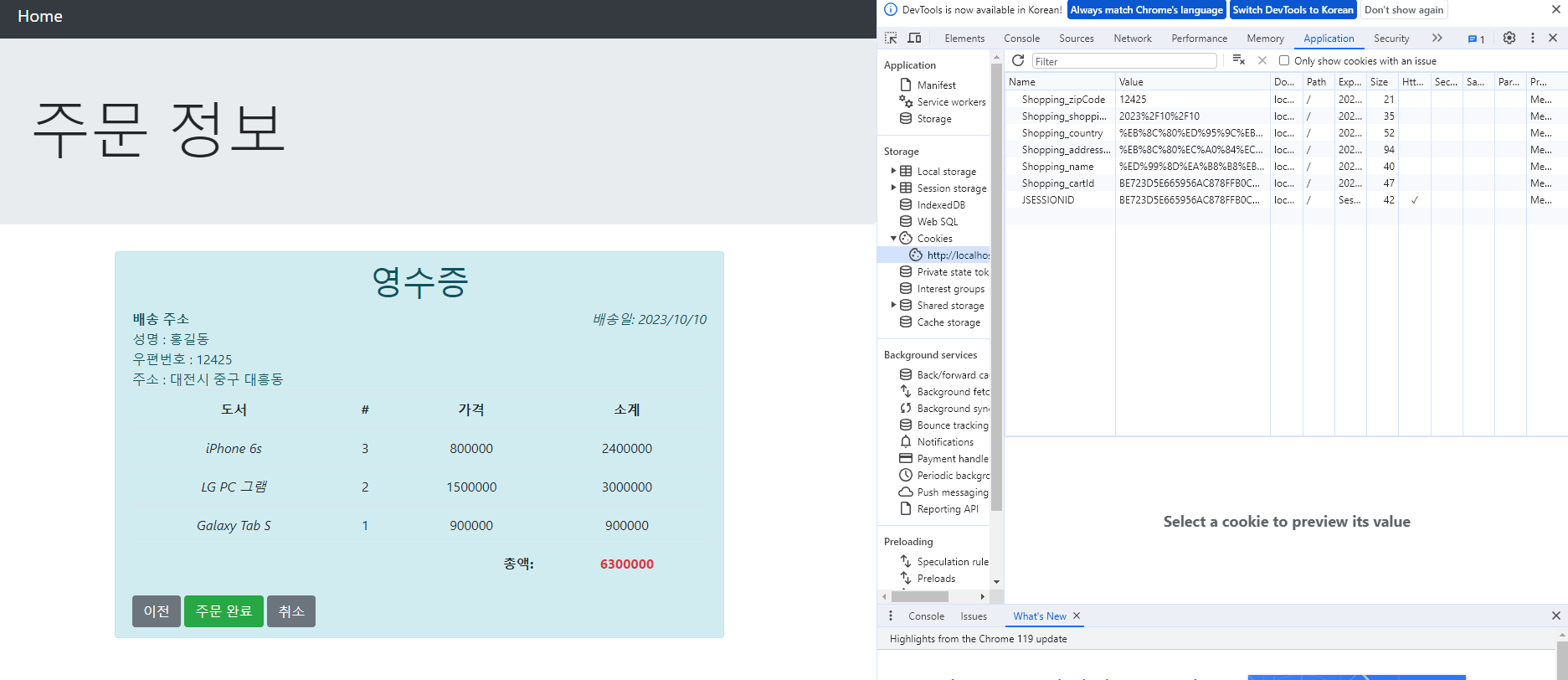 <strong>배송 주소</strong> <br> 성명 : <% out.println(shopping_name); %><br>