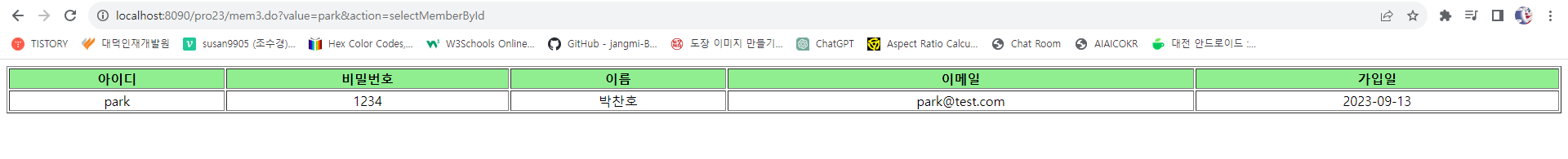 8. 조회된 결과가 memberInfo.jsp 에 표시된다.
