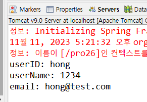 4. 그러면 http://localhost:8090/pro26/test/login2.do로 요청을 보내어 다음과 같은 결과 화면을 출력한다.