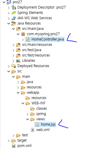 * 다음 그림은 프로젝트 pro27의 소스 파일 구조이다.