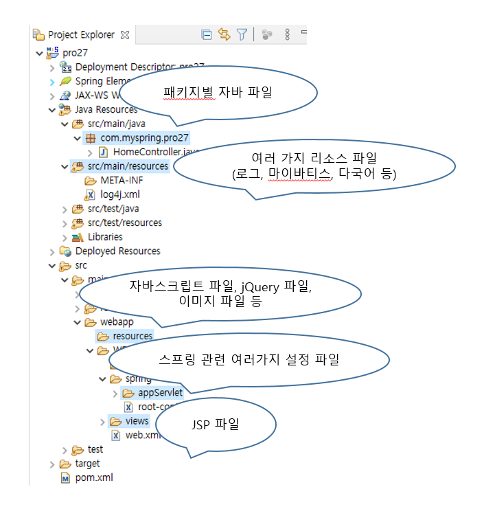 | src/main/webapp | WEB_INF 등 웹 애플리케이션 리소스가 위치한다. |