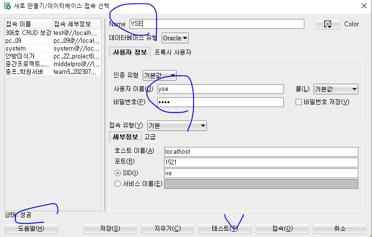 - jdbc를 이용하여 oracle 드라이버로 현재 localhost 데이터베이스 yse에 접속한다.