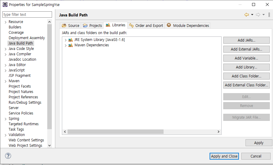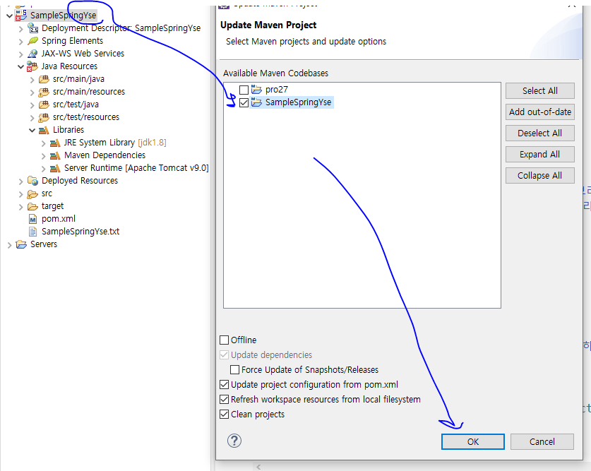 ** 설정 후, Maven Build 또는 Maven의 update project를 진행하여 반영