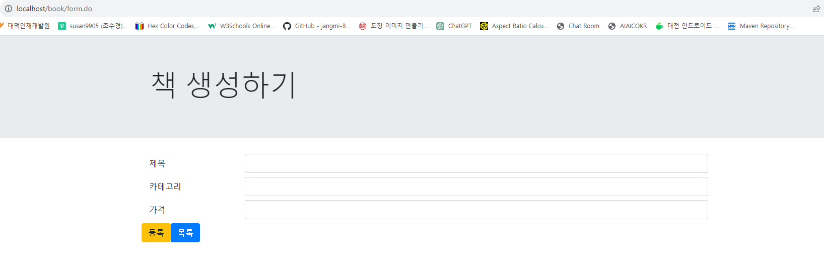 // bookForm() 메서드는 '/book/form.do'를 받는 최종 목적지이다.