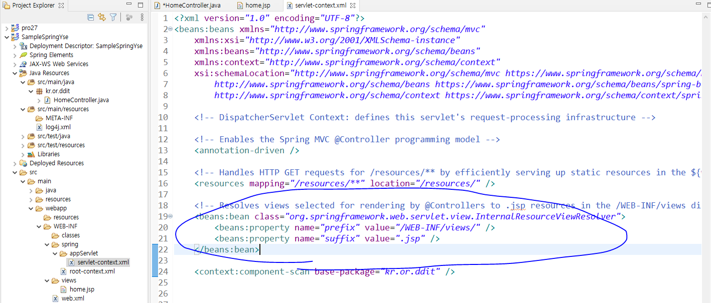 * 제일 먼저 받게 된다. 받아서 suffix, prefix 속성에 의해서 앞에는 'WEB-INF/views/'를 붙이고 뒤에는 '.jsp'를 붙여 최종 위치에 해당하는