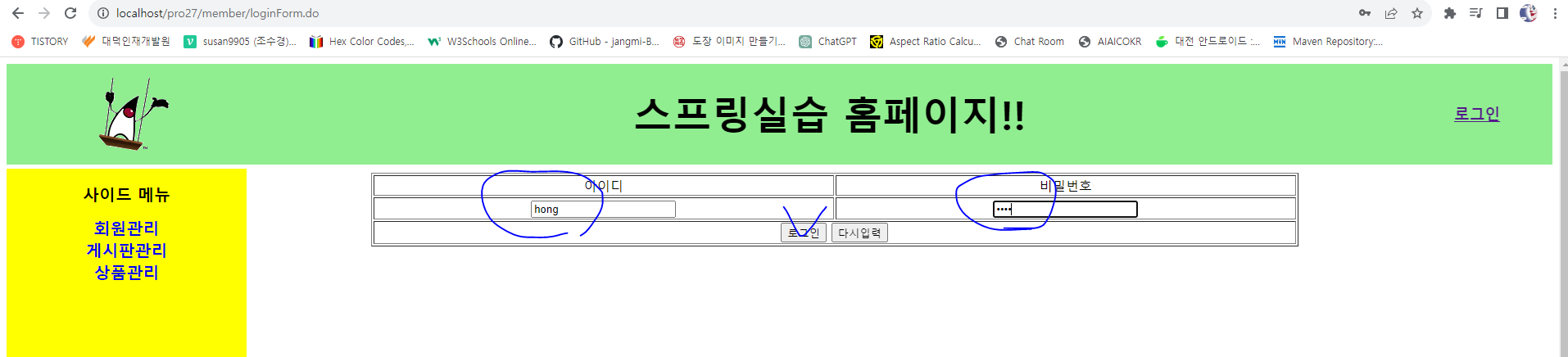 - http://localhost/pro27/member/loginForm.do