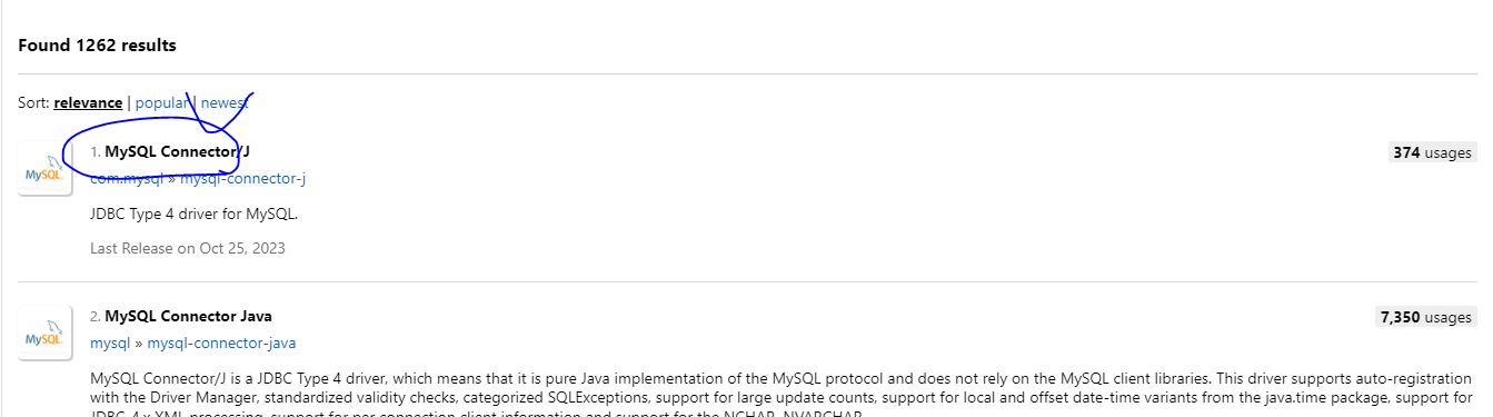 3. 검색 목록에서 MySQL Connector/J를 클릭한다.