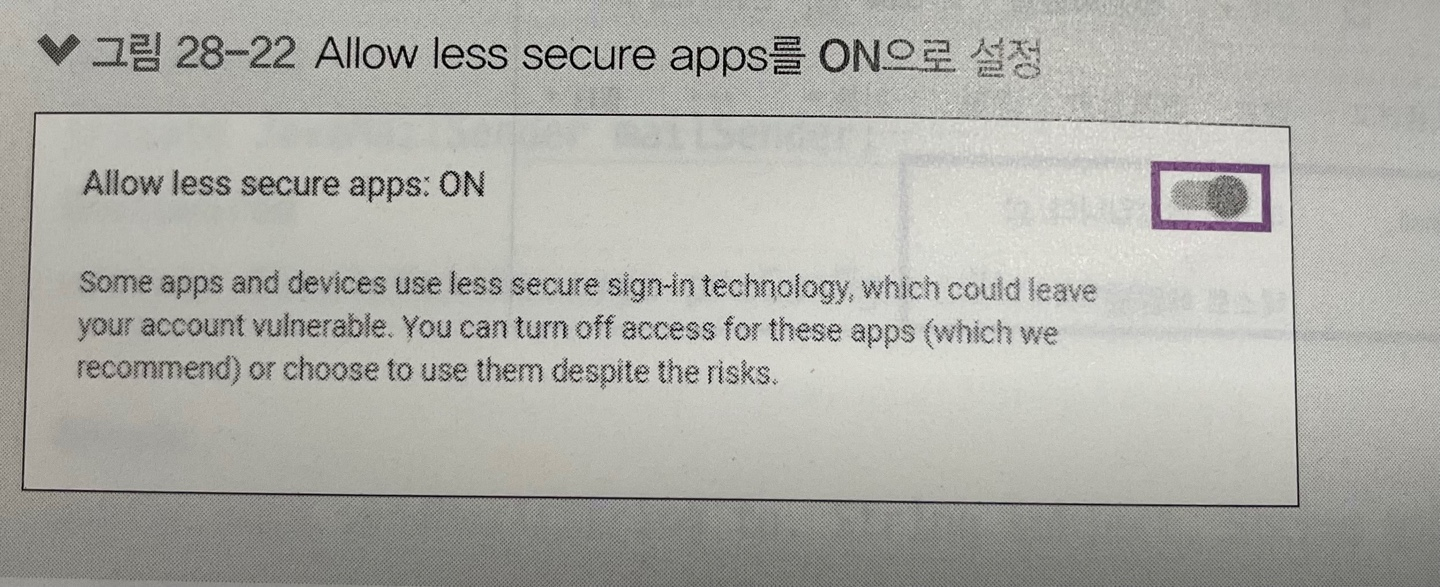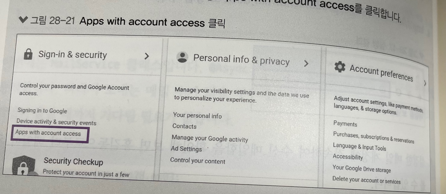 * 그러면 구글 계정 관리에서 보안 설정을 다시 해줘야 한다.