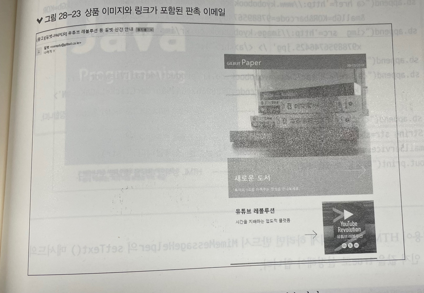 * 하지만 실제로 쇼핑몰 들에서 보내온 판촉 메일을 열어보면 짧은 텍스트로만 이뤄진 메일은 거의 없다. 대부분은 아래 그림처럼 상품 이미지나 링크 등으로 구성된 HTML 형식의 이메일로, 이를 클릭하면 해당 상품 페이지로 이동하도록 되어 있다.