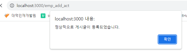 alert("정상적으로 게시글이 등록되었습니다.");