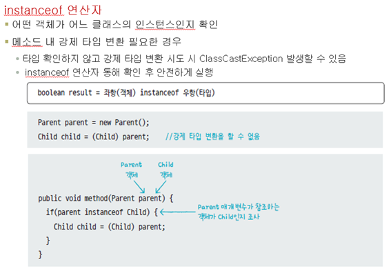 캐스트가 될 수 있는지 없는지에 따른 instanceof 연산자 사용.
