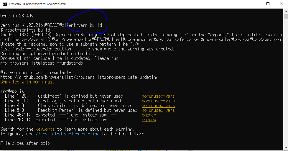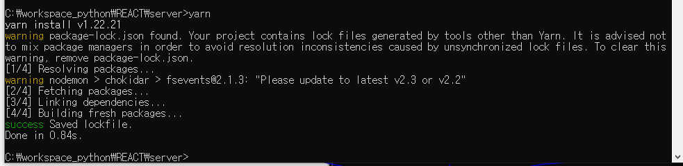 - yarn으로 package.json에 걸린 의존성 모듈을 모두 설치한다.