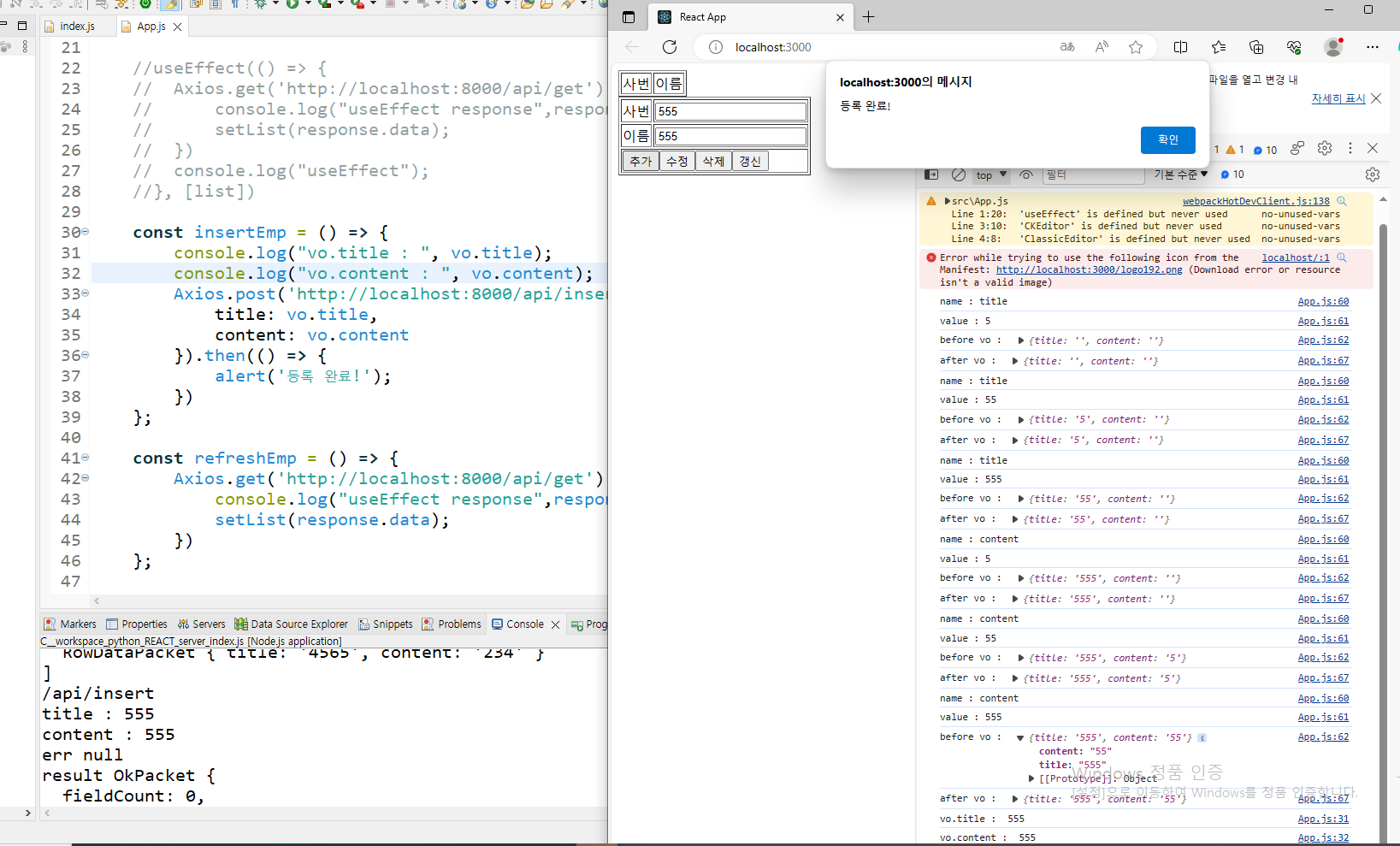 Axios.post('http://localhost:8000/emp/insert', {