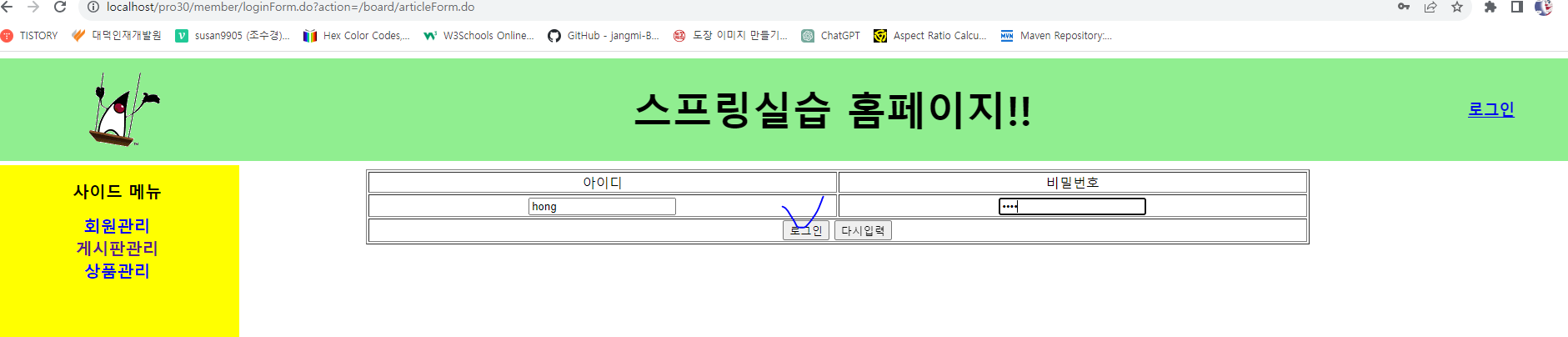 4. 로그인 상태가 아닐 경우 로그인창으로 이동하여 로그인을 클릭한다.