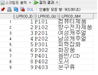 WHERE LPROD_GU = PROD_LGU