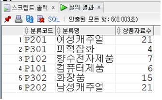 -- 1. 분류테이블 조회