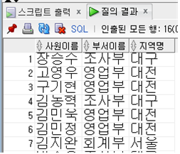 -- NATUAL JOIN을 이용하여 대전에 근무하는 모든 사원의 이름, 업무, 부서번호 및 부서명을 출력하시오.