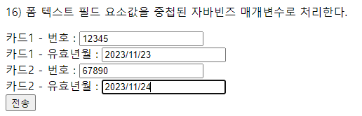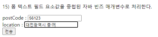 <p>16) 폼 텍스트 필드 요소값을 중첩된 자바빈즈 매개변수로 처리한다.</p>