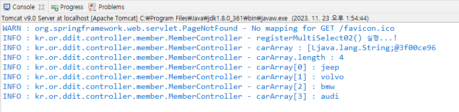 log.info("hobbyArray["+i+"] : " + hobbyArray[i]);