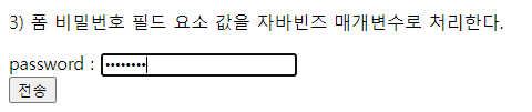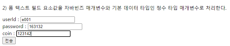 <p>1) 폼 텍스트 필드 요소값을 자바빈즈 매개변수로 처리한다.</p>