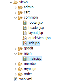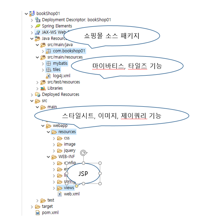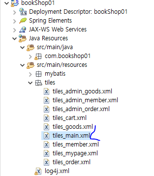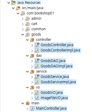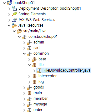 * 이제는 도서 쇼핑몰 중 메인 페이지와 상품 조회 기능을 구현하는 bookshop01 프로젝트의 소스 구조를 살펴보자.