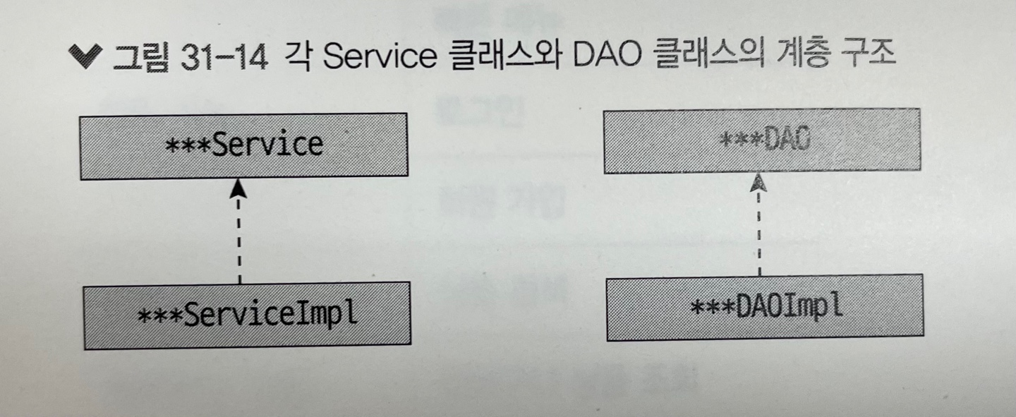 * 또한 다음 그림에서는 Service와 DAO 클래스의 계층 구조를 나타내었다.