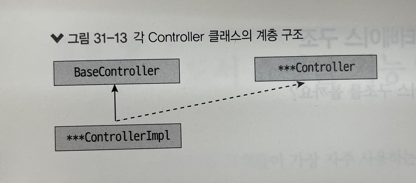 * 모든 Controller 클래스들은 BaseController 클래스를 상속받는 것을 볼 수 있다. 각각의 구현 클래스(*** ControllerImpl)에서 사용할 메서드를 ***Controller 인터페이스에 선언한다.