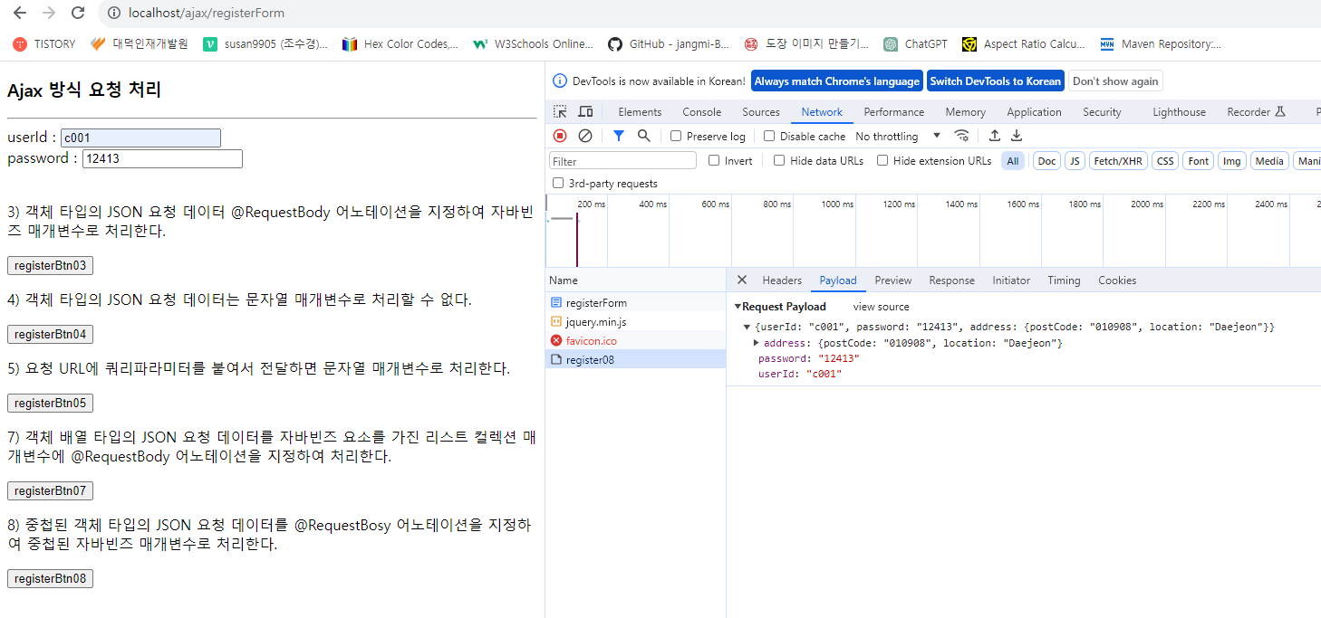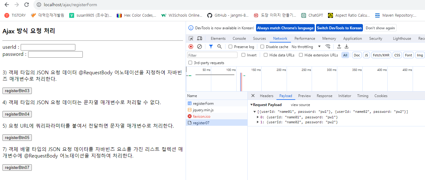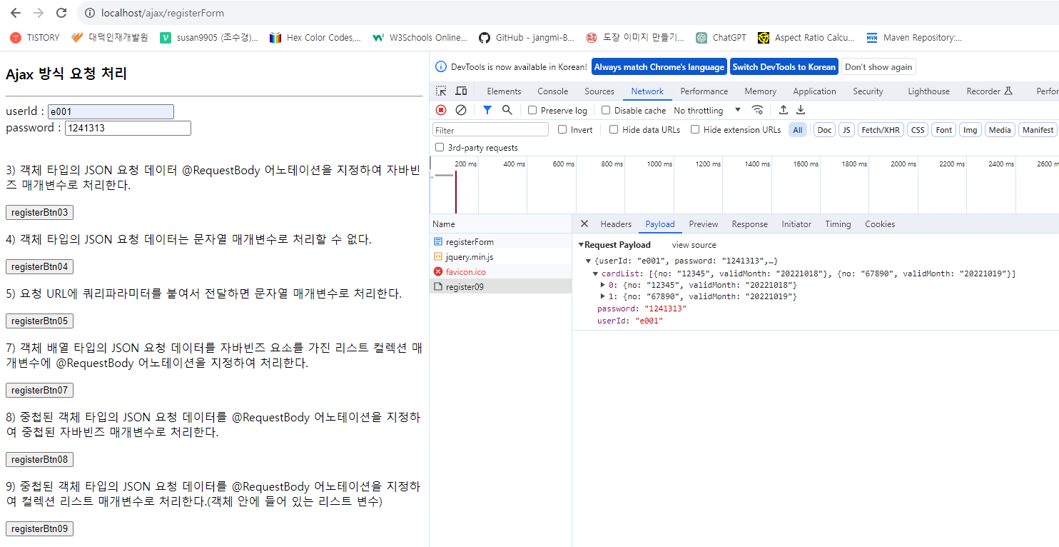 <p>9) 중첩된 객체 타입의 JSON 요청 데이터를 @RequestBody 어노테이션을 지정하여 컬렉션 리스트 매개변수로 처리한다.(객체 안에 들어 있는 리스트 변수)</p>