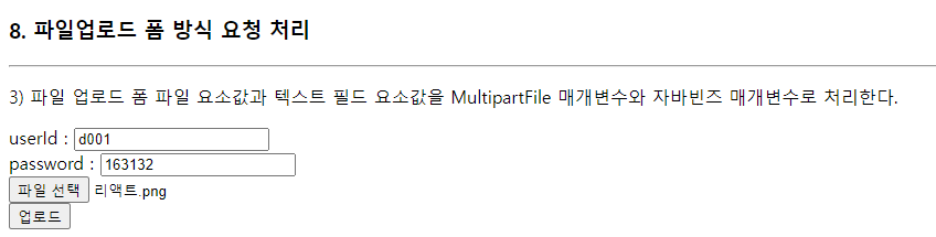 <h3>8. 파일업로드 폼 방식 요청 처리</h3>