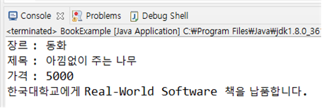 tb1.supplyBook("한국대학교"); // 한국대학교에게 Real-World Software 책을 납품합니다.