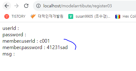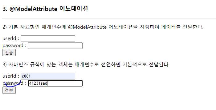 // 2) Model 객체에 자바빈즈 클래스 객체를 값으로만 전달할 때는 뷰에서 참조할 이름을 클래스명의 앞글자를 소문자로 변환하여 처리한다.