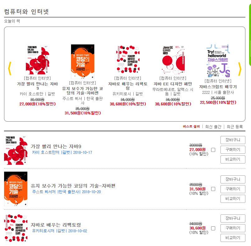 9. '자바'가 포함된 도서가 다음과 같이 결과 페이지에 표시된다.