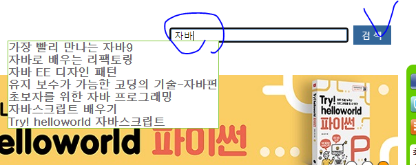 8. 이번에는 검색창에 '자바'를 입력한 후 검색을 클릭해 보자.
