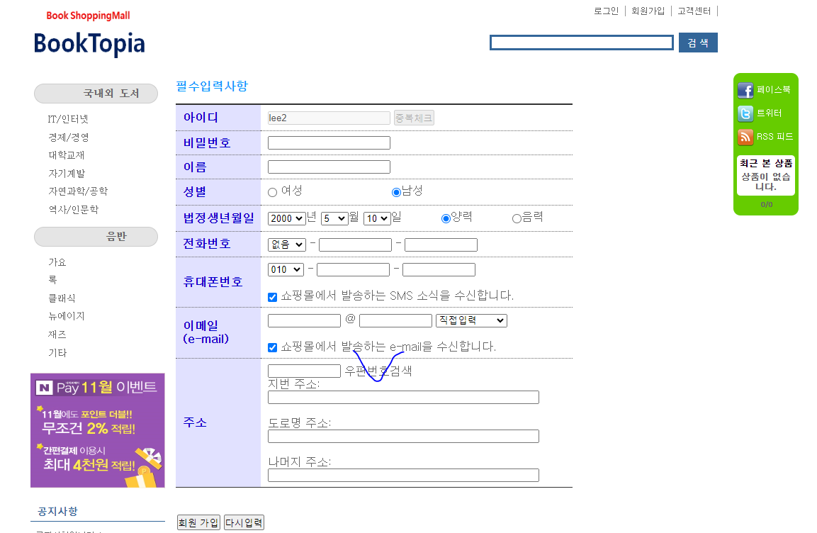 - http://localhost/bookshop01/member/memberForm.do