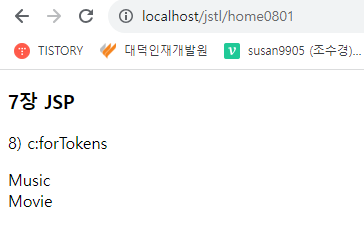 * <c:forTokens> | 구문자로 구분된 각각의 토큰을 처리할 때 사용한다.