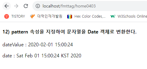 <h4>12) pattern 속성을 지정하여 문자열을 Date 객체로 변환한다.</h4>