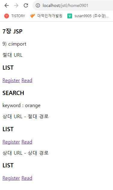 * <c:import> | URL을 사용하여 다른 자원을 삽입한다.