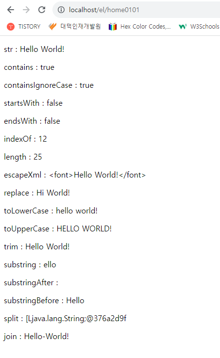 * [ taglib 지시자 사용 ::: <%@ tablib uri="http://java.sun.com/jsp/jstl/function" prefix="fn" %> ]