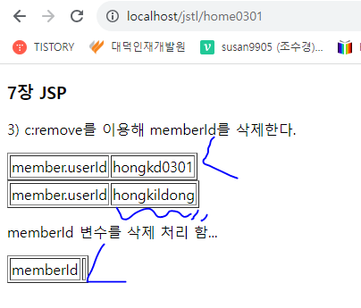 * <c:remove> | 설정한 변수를 제거한다.