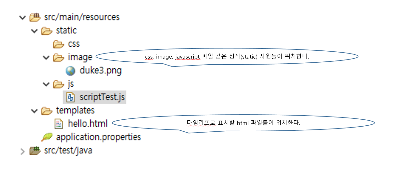 1. src/main/resources 폴더 하위의 static 폴더에 정적 자원들을 저장할 css, image, js 폴더를 각각 만든다.