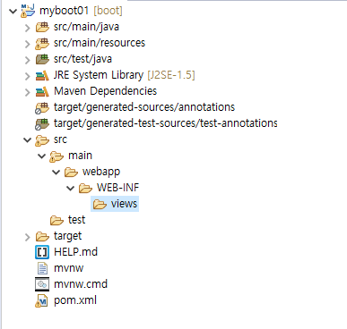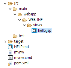 3. application.properties 파일에서 지정한 경로인 src/main/webapp/WEB-INF 폴더 하위에 views 폴더를 생성한다.