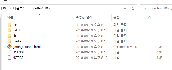 6. gradle-4.10.2 폴더로 이동한 후 해당 경로를 복사한다.