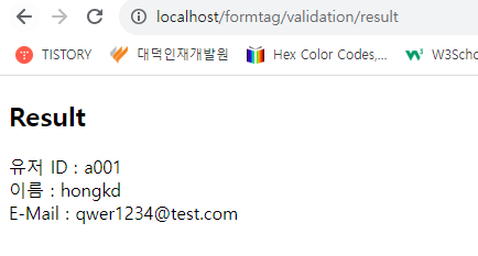 <form:form modelAttribute="member" method="post" action="/validation/result3">